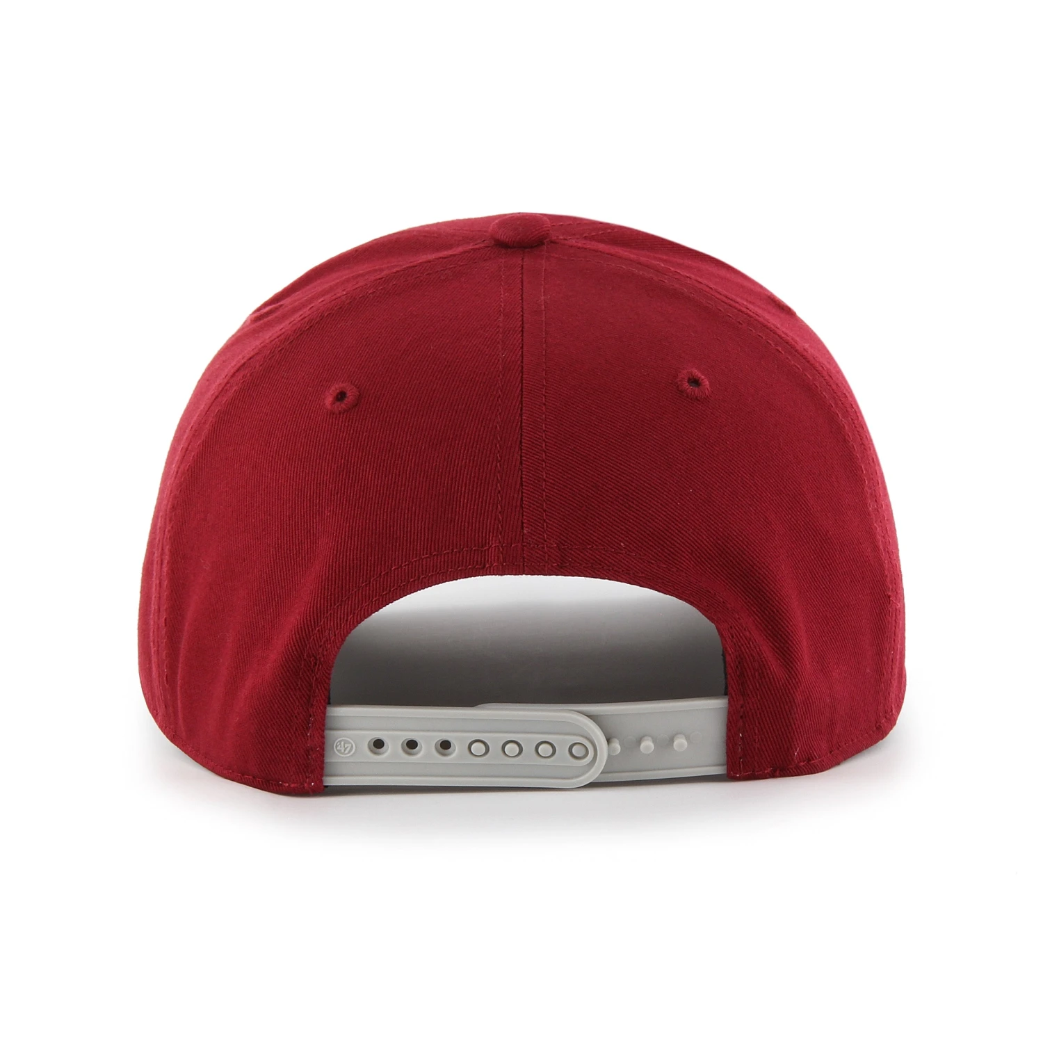 The Two Tone Overhand Script ’47 MVP DV is a structured and curved adjustable with raised embroidery on the front, flat embroidery on the side, a plastic snap closure, and a braided nylon rope along the visor. Made from garment washed cotton twill.