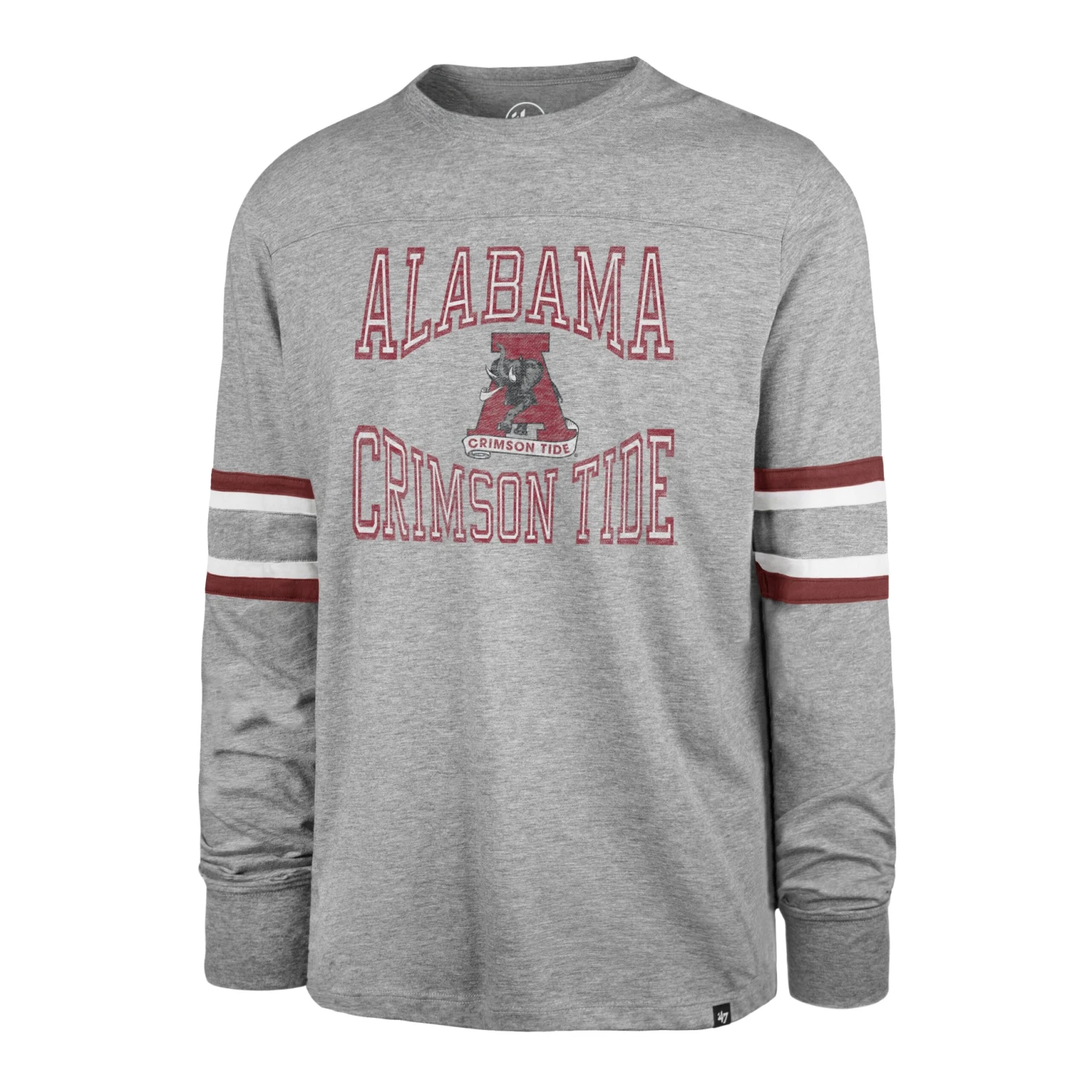 The Cover Two ’47 Brex Long Sleeve Tee is made from 100% cotton franklin jersey. This style features a distressed graphic on the center chest for a vintage aesthetic and top applied team-color sleeve stripes.Â