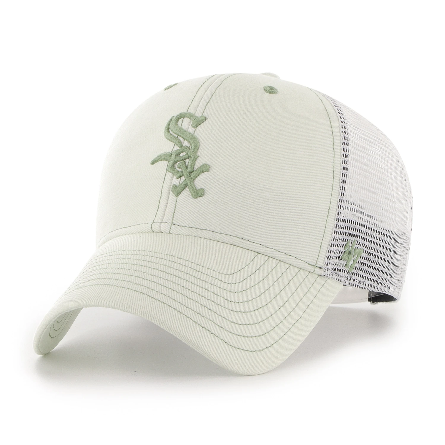The Haze Mesh ’47 MVP has a structured crown, a curved visor, and a plastic snapback closure. The front has raised embroidery. Made from garment wash and hard mesh.