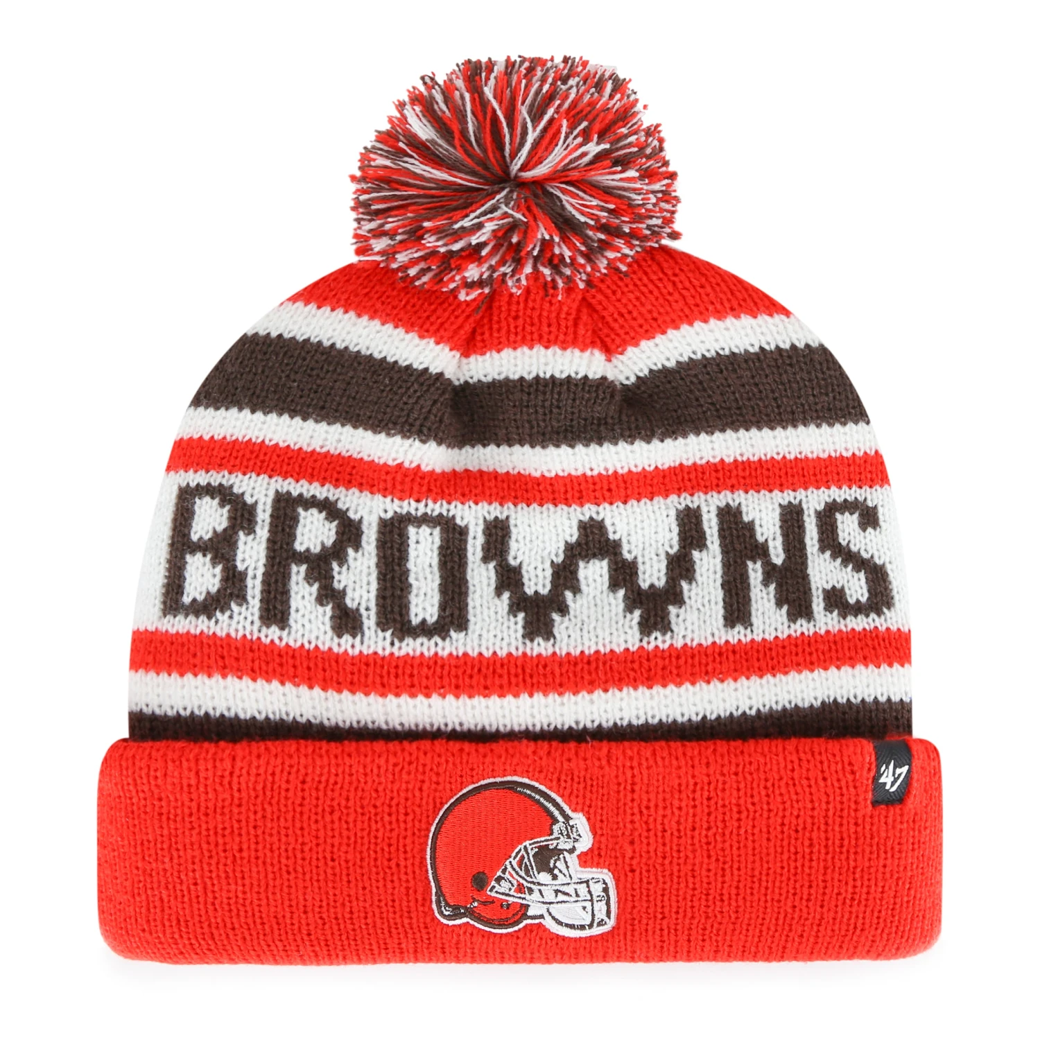 The Hangtime ’47 CUFF KNIT is made from soft and warm acrylic yarns with text jacquard, raised front embroidery, and a pom on top.