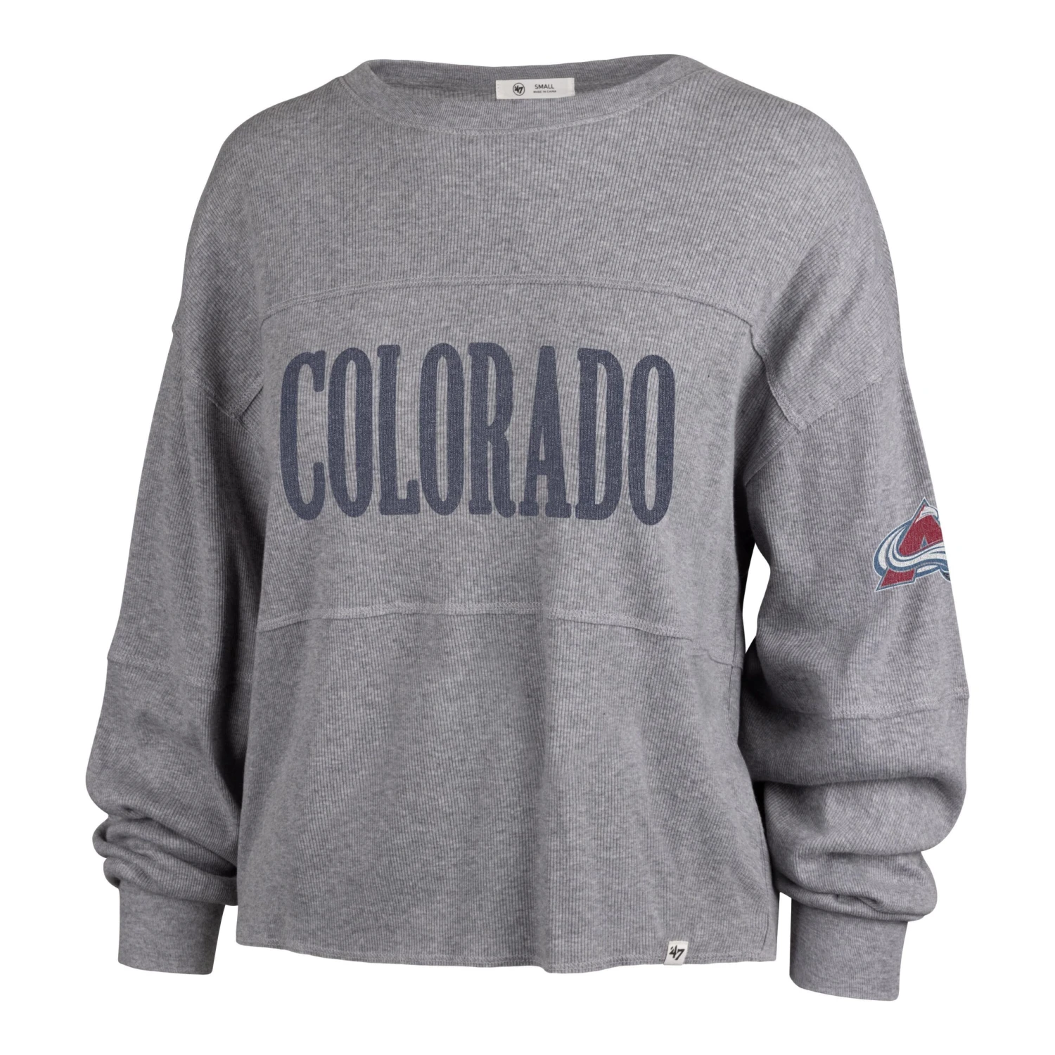The Get Loud ’47 Jada Long Sleeve Tee is made from 60% cotton / 40% polyester macie rib fabric featuring a screen print graphic on the front, hem details, and a logo screen print on the left sleeve.
