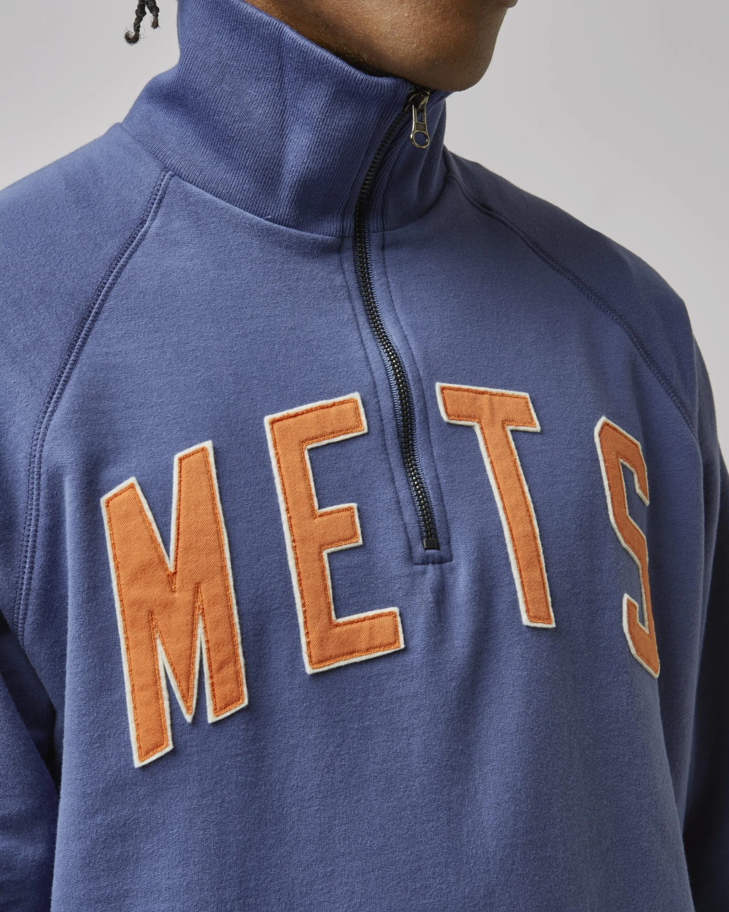 The Banks ’47 Harris Scrimmage 1/4 Zip is made from finely brushed 100% ring-spun Peruvian combed cotton French Terry. The chest and sleeve feature rough twill and felt applique, resulting in details that you can see and feel.