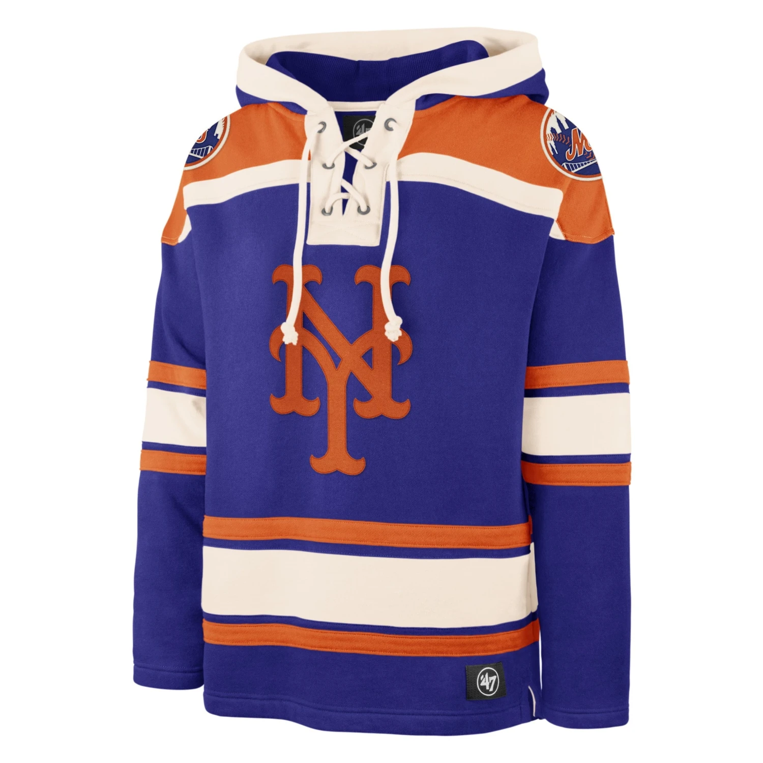 The ’47 Superior Lacer Hood is a hockey-inspired silhouette made from midweight fleece with a thermalined hood and twill appliques on the body, shoulders, and sleeves.