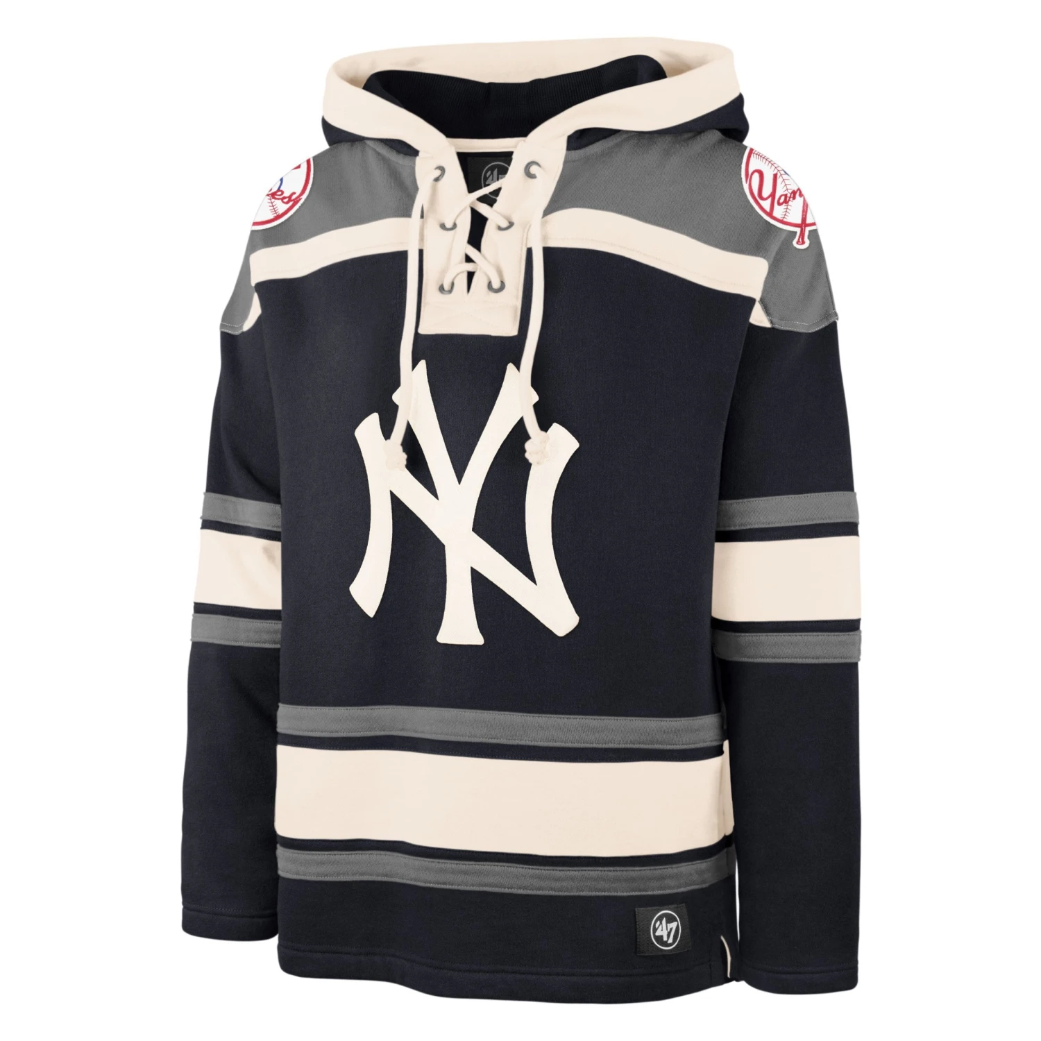 The ’47 Superior Lacer Hood is a hockey-inspired silhouette made from midweight fleece with a thermalined hood and twill appliques on the body, shoulders, and sleeves.