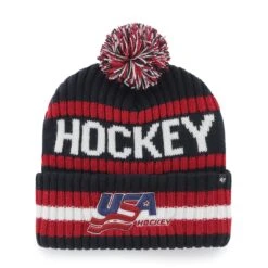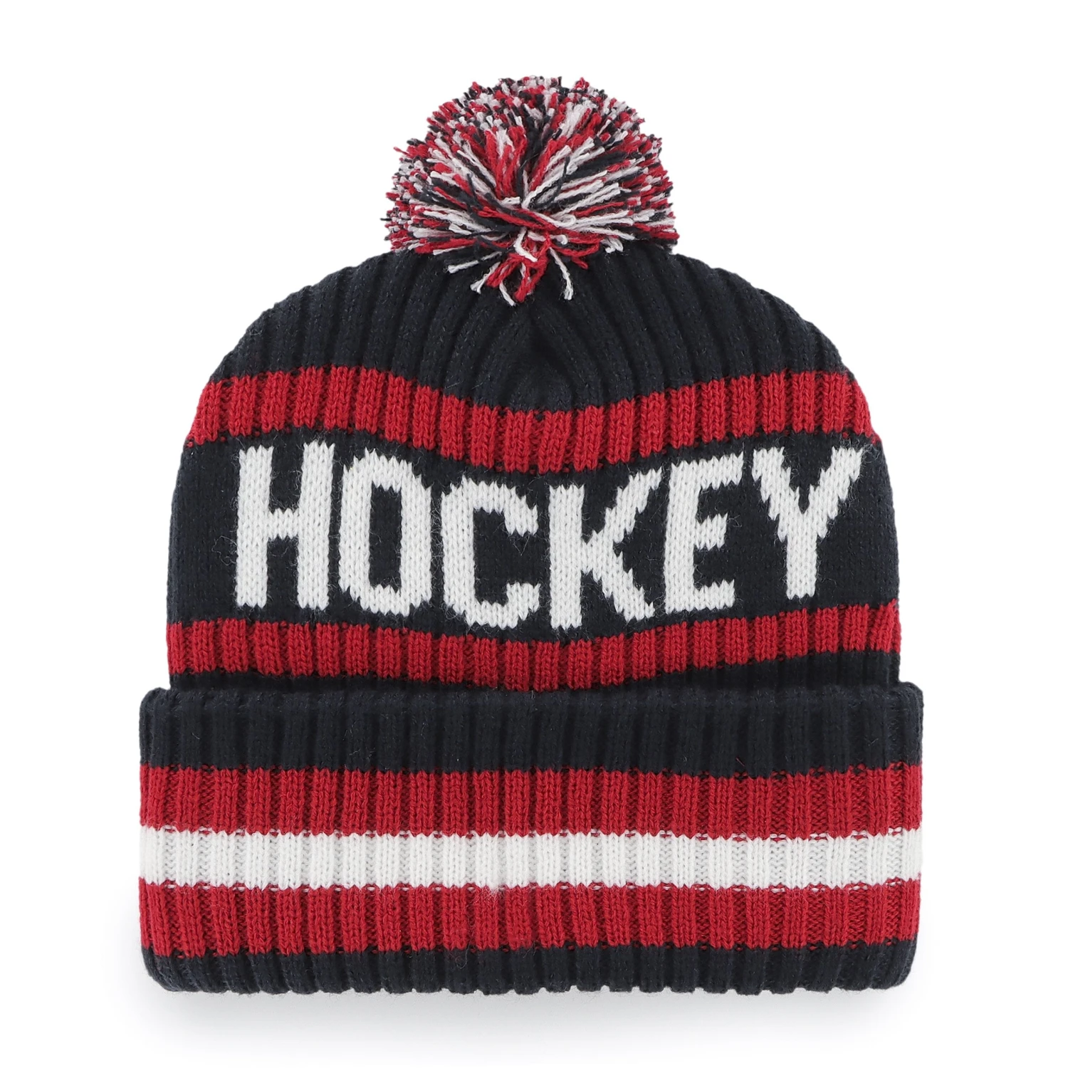The Bering ’47 CUFF KNIT is made from soft and warm acrylic yarns and microfleece with text jacquard, raised front embroidery, and a pom on top.